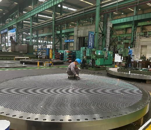 TubeSheet for Heat Exchanger system, Tubesheet is usually made from a round flat piece of plate, sheet with holes drilled to accept the tubes or pipes in an accurate location and pattern relative to one another. The tube sheets are used to support and isolate tubes in heat exchangers and boilers or to support filter elements. Tubes are attached to the tube sheet by hydraulic pressure or by roller expansion. A tube sheet may be covered in a cladding material that serves as a corrosion barrier and insulator. Low carbon steel tube sheets can include a layer of a higher alloy metal bonded to the surface to provide more effective corrosion resistance without the expense of using the solid alloy, which means it can save a lot of costs. With a 100% UT NDT Test, 3.2 certificates could be issued by TPI. The number of Holes could be according to the Customer's drawing